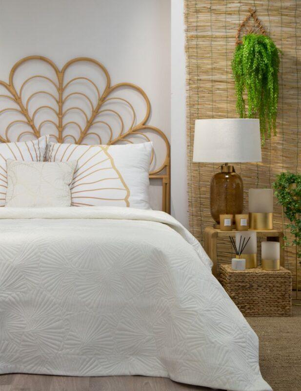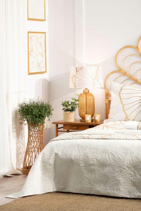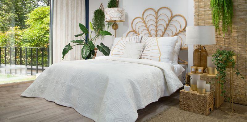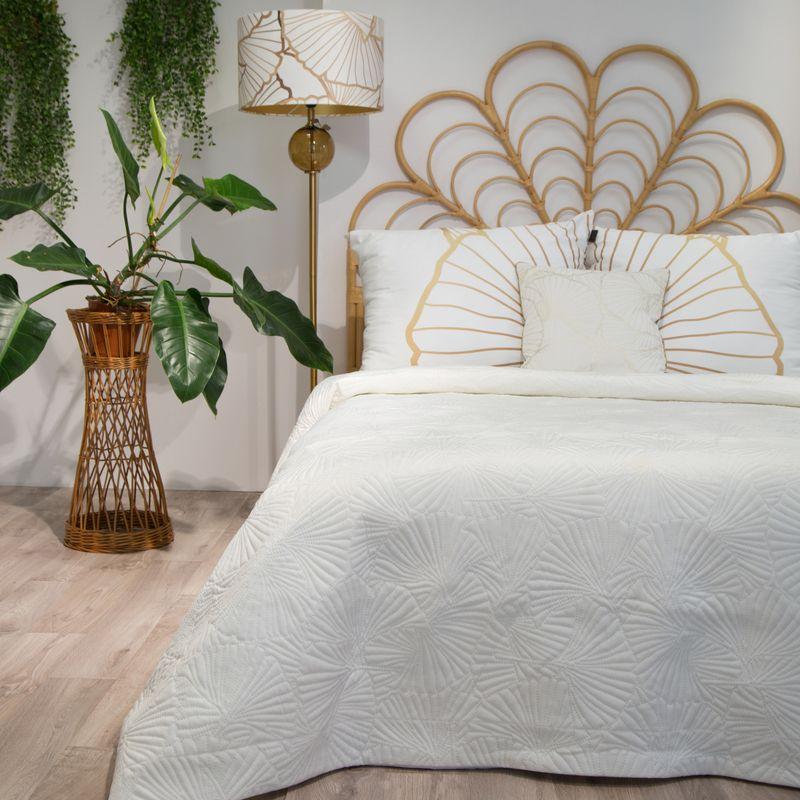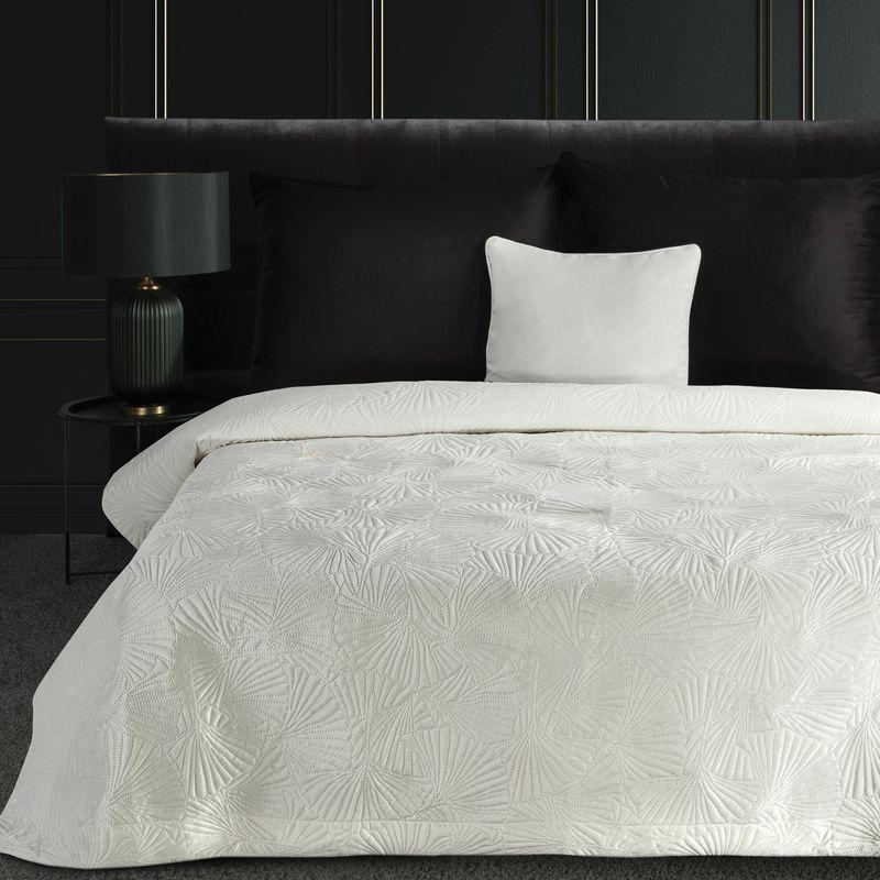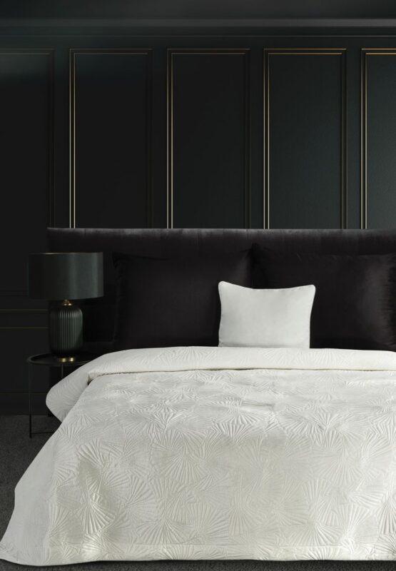 Narzuta welwetowa,wykonana techniką hot press” szerokość: 220 cm, długość: 240 cm, kolor: biały, Gramatura: 200+120+70 GSM, Skład: 100%poliester”