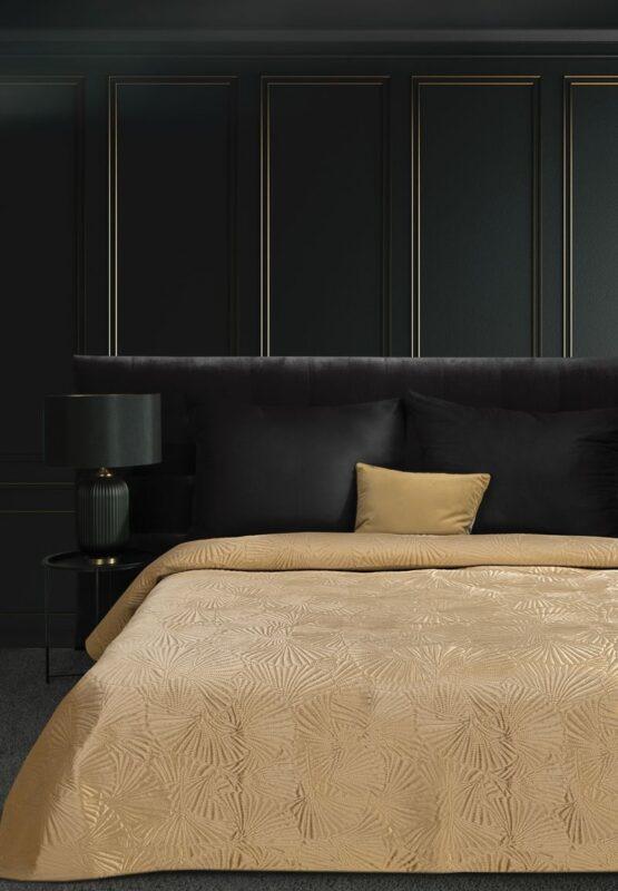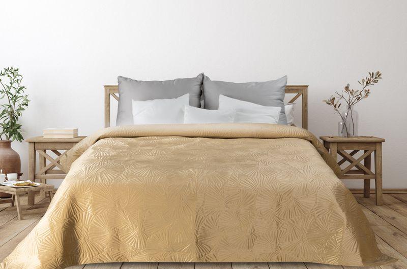 Narzuta welwetowa,wykonana techniką hot press” szerokość: 220 cm, długość: 240 cm, kolor: beżowy, Gramatura: 200+120+70 GSM, Skład: 100%poliester”