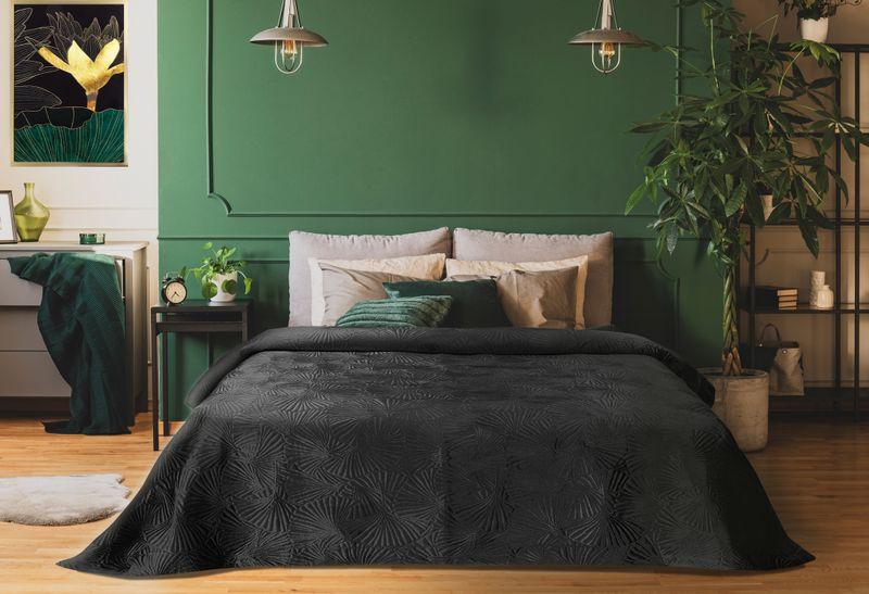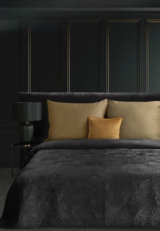 Narzuta welwetowa,wykonana techniką hot press” szerokość: 280 cm, długość: 260 cm, kolor: czarny, Gramatura: 200+120+70 GSM, Skład: 100%poliester”