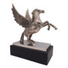 FIGURKA DEKORACYJNA, aluminiowa, w kształcie pegaza,na metalowo-drewnianej podstawie