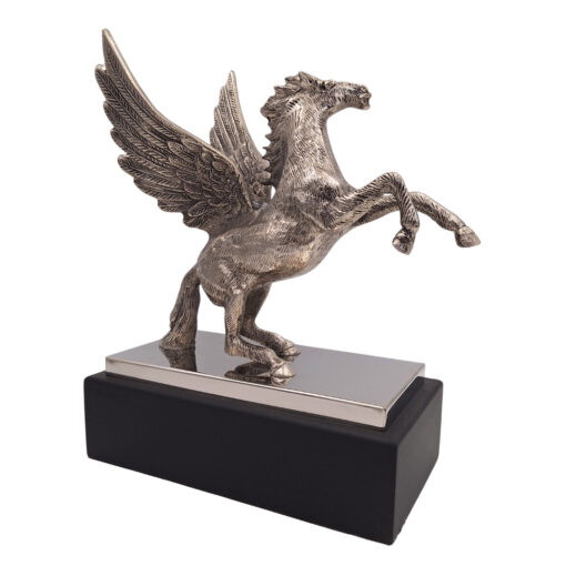 Napisz pierwszą opinię o „FIGURKA DEKORACYJNA, aluminiowa, w kształcie pegaza,na metalowo-drewnianej podstawie”