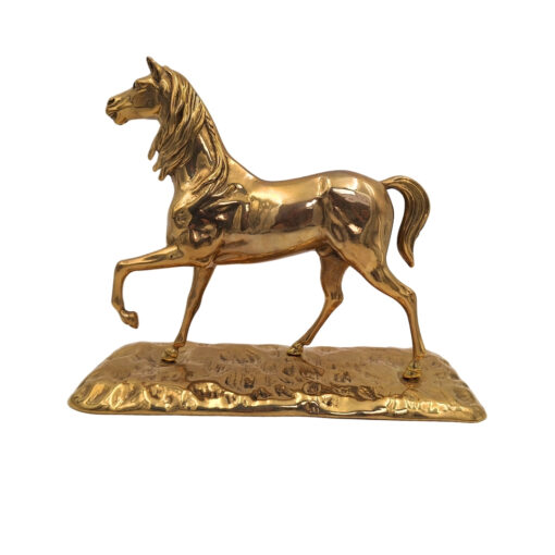 Mosiężny Koń to efektowna figurka dekoracyjna wykonana z trwałego mosiądzu w złotym kolorze. Dzięki starannemu wykończeniu i eleganckiej formie będzie doskonałą ozdobą wnętrz w stylu klasycznym, nowoczesnym lub glamour. Figurka pięknie prezentuje się na komodzie, regale, biurku czy stoliku, nadając przestrzeni wyjątkowego charakteru.