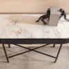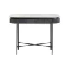 KONSOLA na stalowych nogach, z teksturalnym, drewnianym korpusem i marmurowym blatem w bieli, nowoczesna i subtelnie elegancka