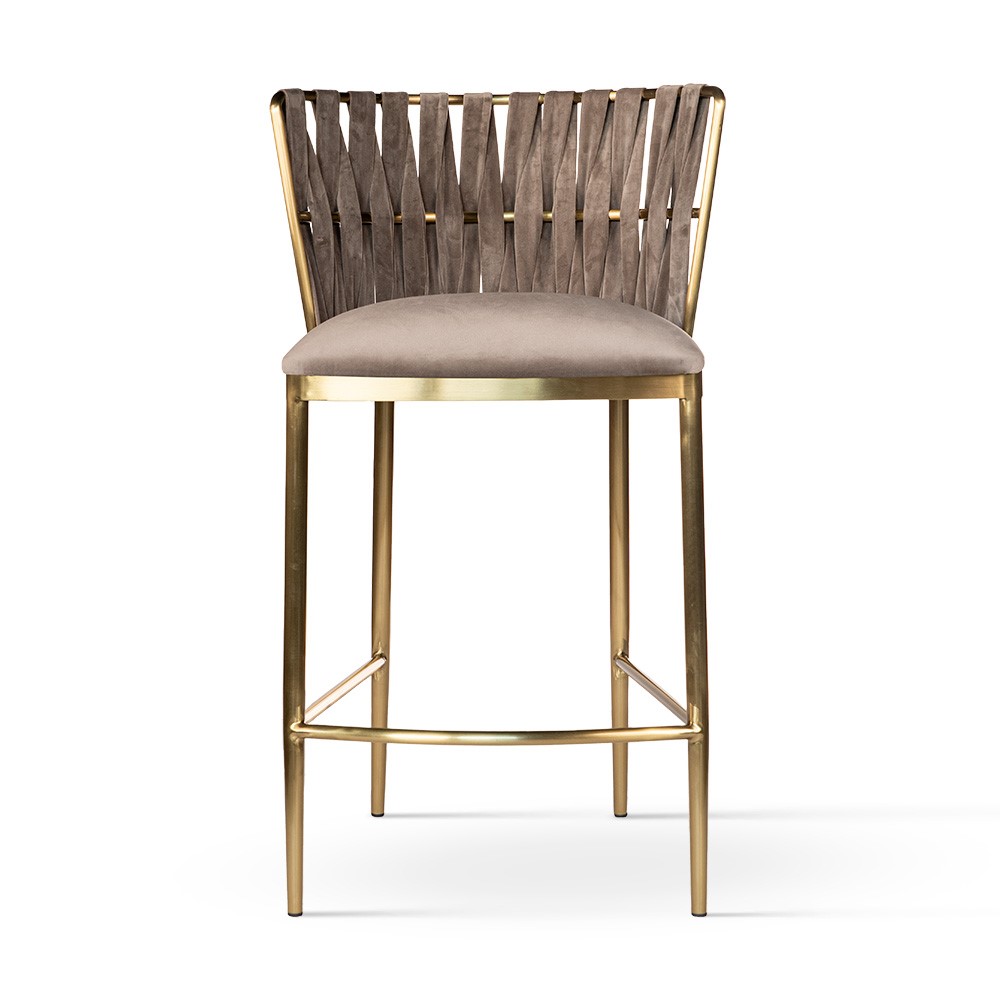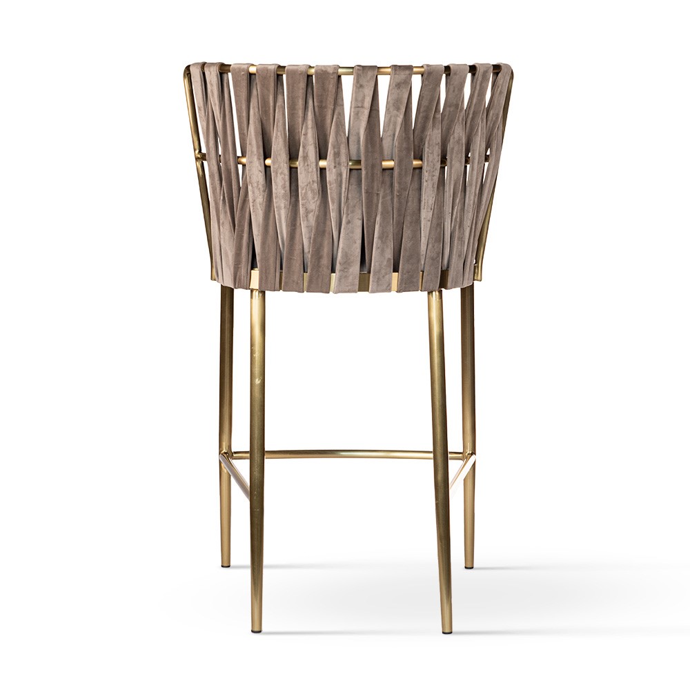 Krzesło barowe Hordia, z welurowym siedziskiem i nogami w szczotkowanym złocie, jest ikoną luksusu i wyrafinowanego stylu. Jego elegancki design oraz unikalny wzór na oparciu czynią go niezwykle wdzięcznym elementem wystroju, idealnie wpisującym się w estetykę glamour.