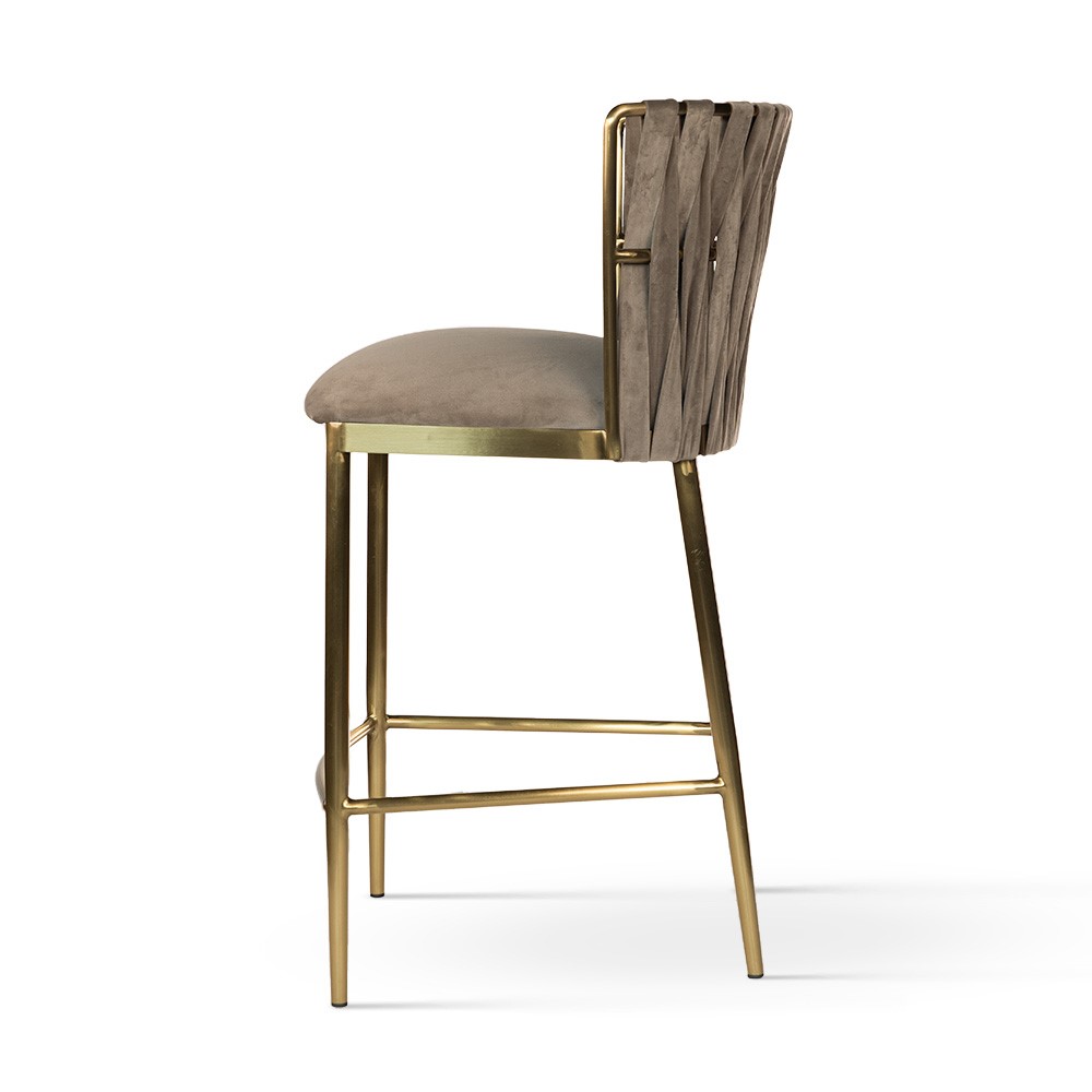 Niskie krzesło barowe Hordia zostało starannie wykonane z materiałów najwyższej jakości, co zapewnia jego trwałość i solidność. Nogi w kolorze szczotkowanego złota zostały precyzyjnie wykończone, a welurowe siedzisko zostało tapicerowane z dbałością o najmniejszy detal, nadając mu elegancki i luksusowy wygląd. Krzesło doskonale harmonizuje z wnętrzami w stylu glamour oraz nowoczesnymi aranżacjami, dodając im niepowtarzalnej elegancji i prestiżu.