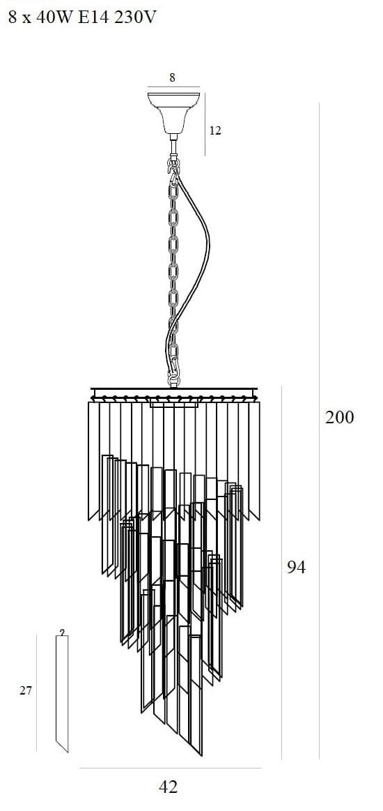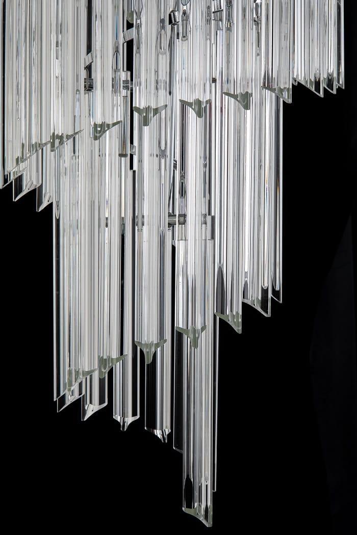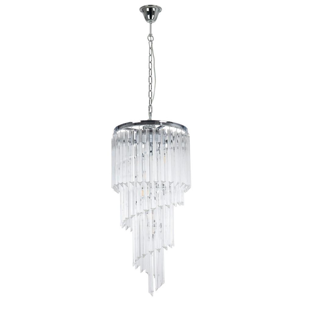 Szklano-metalowa lampa wisząca Dignity prezentuje się jako nowoczesna i elegancka oprawa, w której klosz został zbudowany z efektownie skomponowanych szklanych elementów, unoszących się na spiralnie skręconej metalowej ramie w chromowanym wykończeniu. Ta harmonijna kompozycja nadaje lampie niezwykłej lekkości i nowoczesności, jednocześnie zachowując wyrafinowany charakter. Szklane elementy klosza, umieszczone na subtelnie zakręconej ramie, dodają lampie Dignity wyjątkowego blasku, a umieszczone wokół podstawy kryształy wnoszą do pomieszczenia subtelne refleksy świetlne, tworząc przyjemny efekt wizualny. Ta kryształowa lampa wisząca z srebrnym, metalowym stelażem świetnie komponuje się z nowoczesnymi aranżacjami wnętrz, a także sprawdzi się w przestrzeniach o glamour charakterze czy nowojorskim stylu. Doskonale nadaje się jako oświetlenie do domowych salonów czy sypialni, nadając im wyjątkowego charakteru, a także stanowi elegancki akcent w przestrzeniach komercyjnych, takich jak hotele czy restauracje. Kryształowa lampa wisząca Dignity to nie tylko funkcjonalne oświetlenie, ale również designerski element, który wzbogaca estetykę każdego pomieszczenia, nadając mu nowoczesnego i stylowego wyrazu. Wymiary lampy wiszącej (Śr. x W.): 42 x 200 cm