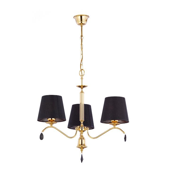 Materiał: Metal, Tkanina, SzkłoNapisz pierwszą opinię o „LAMPA WISZĄCA trzypunktowa czarne klosze złote wykończenie styl glamour EGIDA EG 3 ms Jupiter”