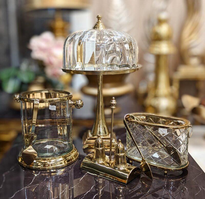 Złota, metalowa patera na nóżce z ozdobną, szklaną osłonką stanowi doskonałe uzupełnienie stołu podczas rodzinnych uroczystości, emanując luksusem i elegancją. Wyposażona w szklaną osłonkę, gwarantuje nie tylko estetyczne podanie słodkości, ale również utrzymanie ich świeżości. Klasyczny design patera sprawia, że staje się nie tylko praktycznym elementem zastawy, ale także efektownym dodatkiem dekoracyjnym, nadającym wytwornego charakteru zarówno sypialni, jak i łazience. To wyjątkowe miejsce na ulubione perfumy czy produkty do codziennej pielęgnacji. Warto zaznaczyć, że patera dostępna jest także w eleganckim kolorze srebrnym, co pozwala dostosować ją do różnorodnych stylów aranżacyjnych.