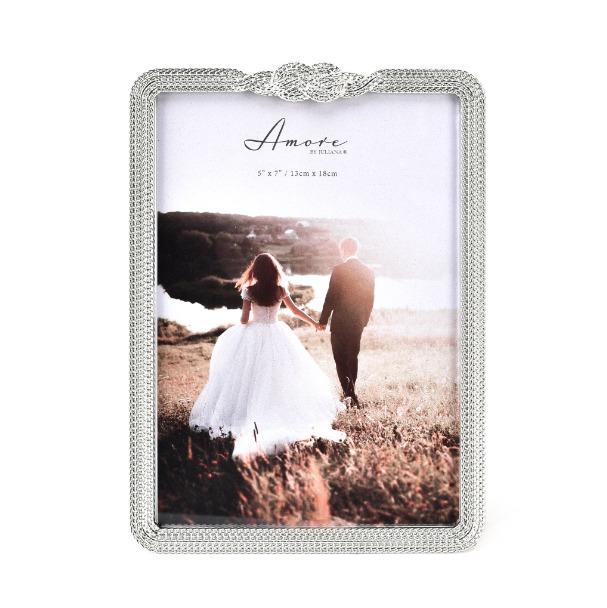 Stylowa srebrna ramka na zdjęcia to doskonały dodatek zarówno do nowoczesnych salonów, jak i klasycznych sypialni. Jej elegancki design, inspirowany formą łańcucha, nadaje jej niepowtarzalny charakter, a srebrna obwódka otaczająca fotografie emanuje wyrafinowaną estetyką.