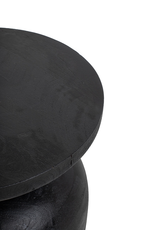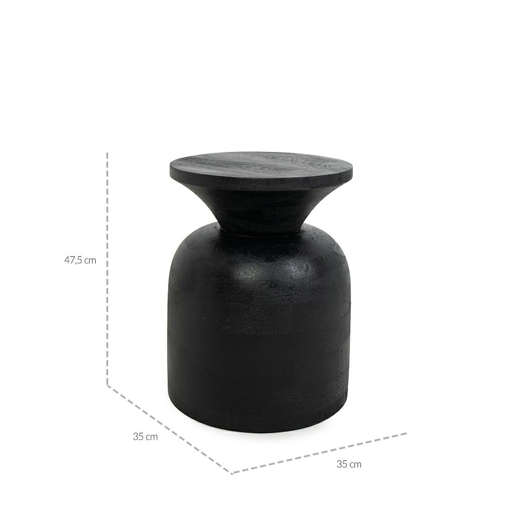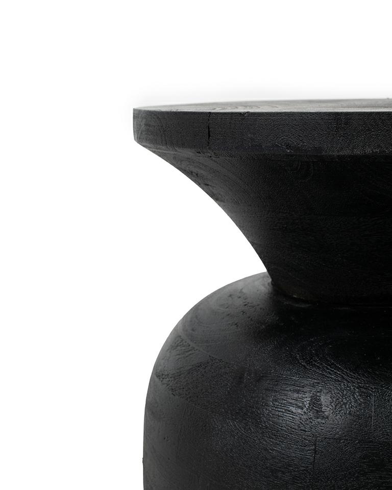 Stolik zachwyca wyrafinowanym połączeniem rzeźbiarskiej formy z naturalnym charakterem drewna mango, tworząc wyjątkowy element dekoracyjny. Kształt inspirowany elegancką wazą nadaje mu niepowtarzalny, artystyczny charakter, dzięki czemu staje się zarówno funkcjonalnym, jak i rzeźbiarskim akcentem wnętrza. Matowe wykończenie dodaje całości subtelności i klasy, harmonijnie komponując się z nowoczesnymi oraz eklektycznymi aranżacjami. To propozycja dla osób ceniących design, jakość wykonania i unikatowe formy.