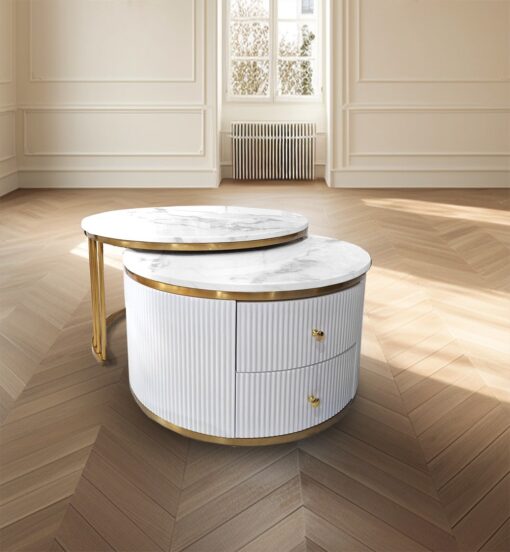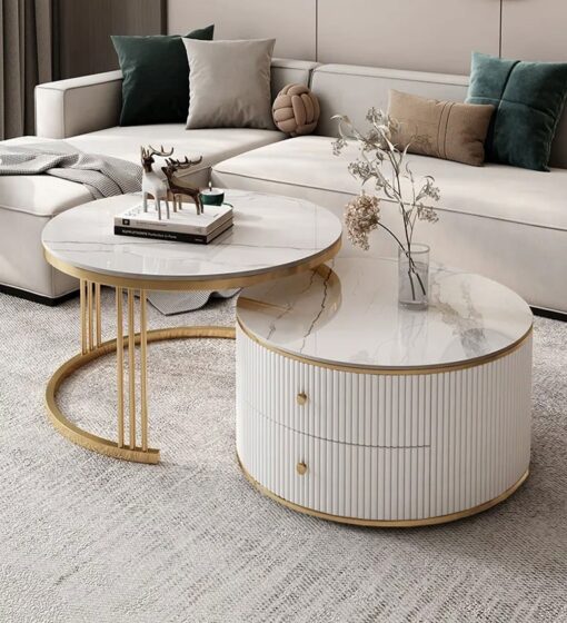 - Ekskluzywny wygląd – Marmur i złoto szczotkowane nadają stolikom luksusowego charakteru.