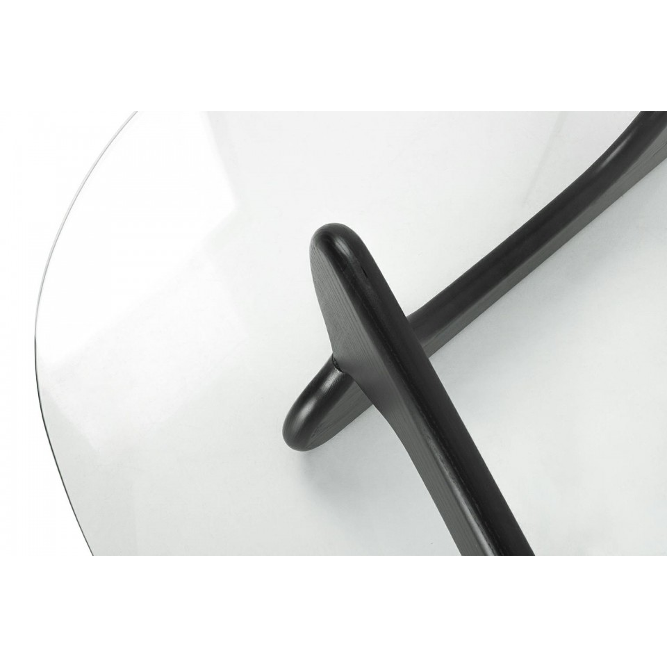 Ten stolik łączy w sobie nowoczesną elegancję szkła z naturalnym pięknem drewna jesionowego, tworząc mebel, który doskonale wpasuje się w każde wnętrze. Blat z transparentnego szkła typu FLOAT nadaje stolikowi lekkości i subtelnej elegancji, a jego gładka powierzchnia i przezroczystość sprawiają, że mebel świetnie komponuje się w przestrzeniach minimalistycznych.