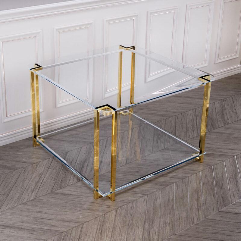 Odkryj piękno stolika kawowego, który doskonale łączy nowoczesny design z klasycznymi detalami. Jego prosty, kwadratowy kształt sprawia, że doskonale komponuje się z różnymi aranżacjami wnętrz, stając się centralnym punktem każdego pomieszczenia. Ten stolik doskonale łączy ze sobą estetykę i funkcjonalność, idealnie sprawdzając się jako stolik kawowy w salonie lub elegancki dodatek w gabinecie czy sypialni. Jego minimalistyczna, a jednocześnie unikatowa forma pięknie podkreśla wnętrza urządzone w stylu glamour, nowoczesnym i industrialnym.