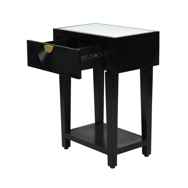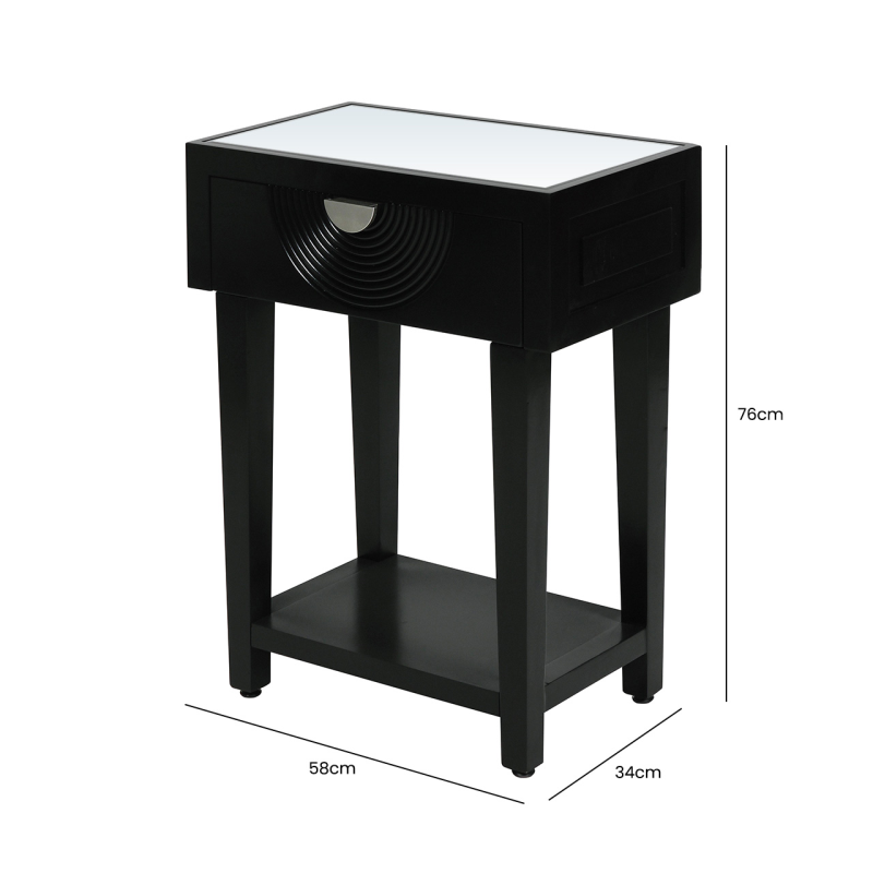 Stolik pomocniczy Elon to nie tylko praktyczny element wyposażenia, ale również wyraz nowoczesnego designu, który podkreśli elegancję Twojego wnętrza. Elegancka konstrukcja oraz design zapewniają czysty, minimalistyczny wygląd, który płynnie łączy się z każdą nowoczesną estetyką. Czarna kolorystyka stolika pomocniczego Elon nadaje mu klasycznego i ponadczasowego charakteru, a lustrzany blat, który delikatnie odbija światło dodaje mu lekkości. Minimalistyczna i prosta forma stolika idealnie wpisuje się w nowoczesne, loftowe i surowe wnętrza, ale również w klasyczne i tradycyjne aranżacje.