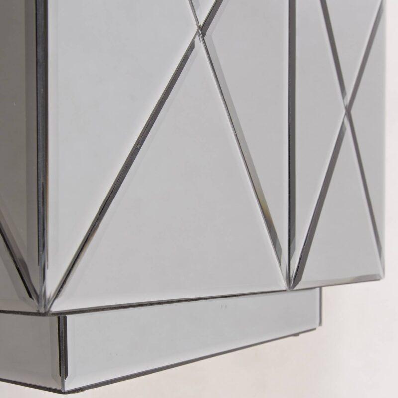 Stolik pomocniczy Soho wykonany został z niewielkich lusterek, które ułożone są w geometryczny wzór. Dodatkowo dzięki fazowanym krawędziom całość mebla prezentuje się wyjątkowo elegancko. Stolik Soho idealnie sprawdzi się w każdej nowoczesnej aranżacji, gdzie dominują stonowane barwy i lustrzane detale. Doda elegancji każdemu wnętrzu zarówno w domowej sypialni jako stolik nocny, czy w holu hotelowym czy w przestrzeni biurowej jako stolik na drobiazgi. Seria Soho zawiera również stolik kawowy. Stolik pomocniczy Soho został wykonany z przydymionych grafitowych lusterek. Stolik pomocniczy Soho idealnie sprawdzi się we wnętrzach urządzonych w stylu nowoczesnym z nutą glamour. Wymiary: 40x40x60 cm