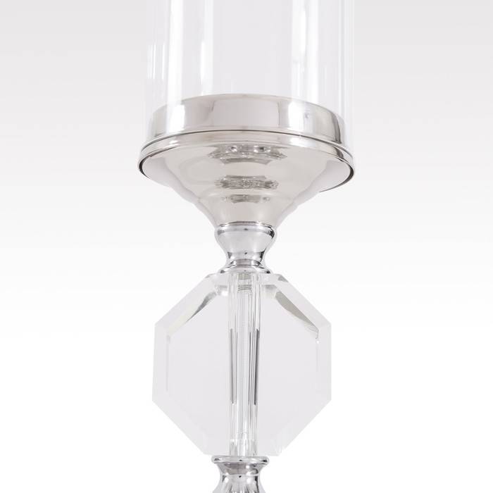 Metalowo-szklany świecznik Adele to wyrafinowany element oświetlenia, utrzymany w nowoczesnym stylu. Jego solidna podstawa wykonana została z niklowanej stali, a subtelną ozdobę stanowi kryształowe szkło. Świecznik Adele stanowi doskonałe uzupełnienie aranżacji zarówno salonu, jak i sypialni, wprowadzając do wnętrza ciepło i przytulny klimat.