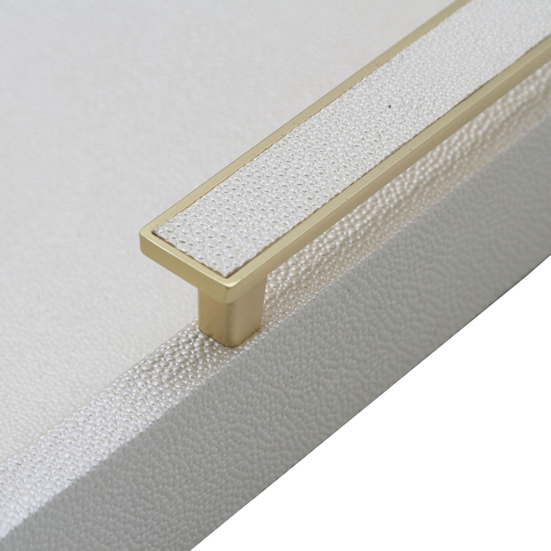 TACA Faux Litchi prostokątna, beżowa, złote uchwyty, styl glamour
