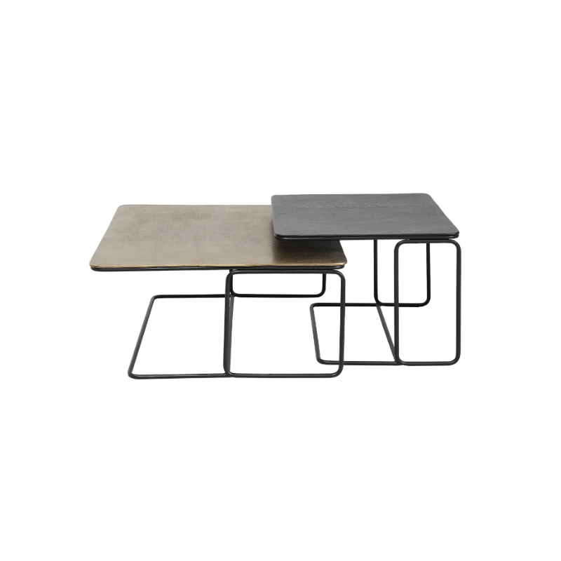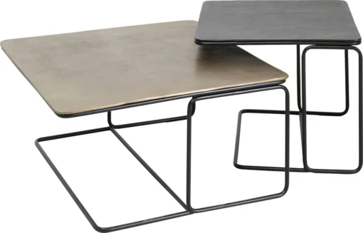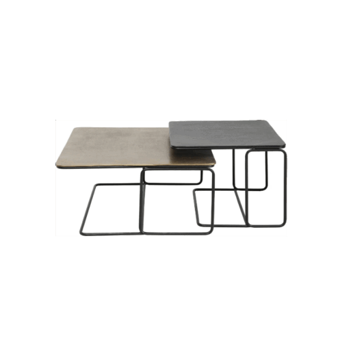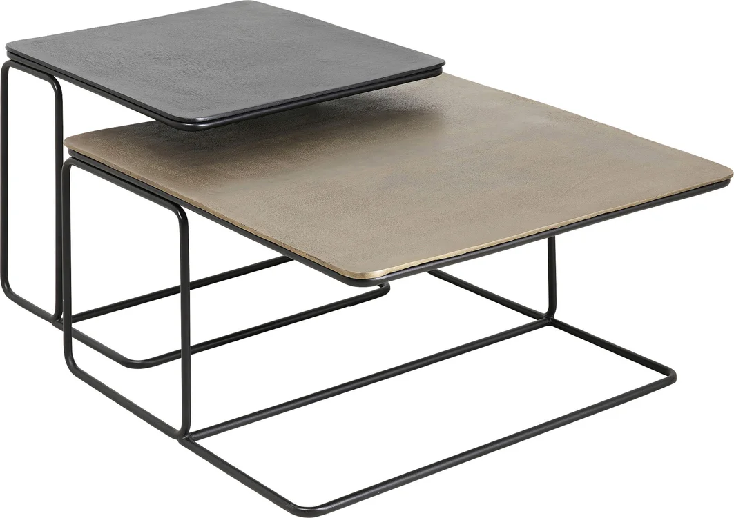 ZESTAW STOLIKÓW KAWOWYCH 2w1 z aluminium, w kolorze mosiądz-antracyt, prostokątny, współczesny design